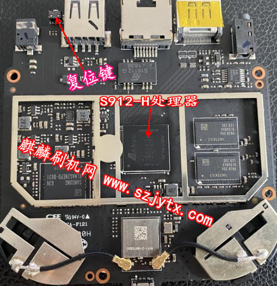 4.刷机联机方式:顶住复位键别松开然后插入数据线连接电脑,然后给盒子通电