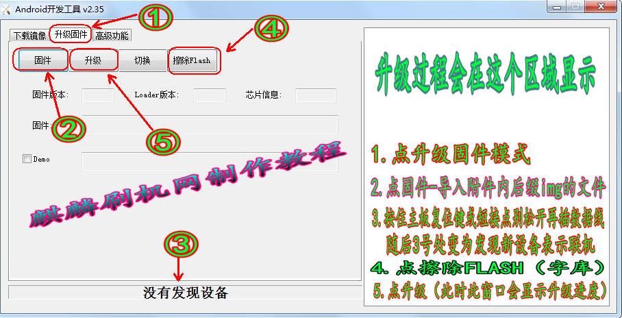 5.完事点升级按钮即可进入升级,升级过程会在右侧空白处展示刷机进度