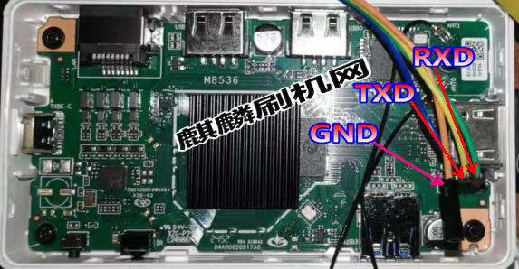 TTL触点位于主板HDMI接口下方有四个触点,从左向右数1=GND/2=TX/3=RX;